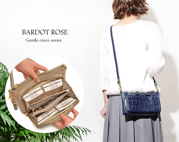 カラーで楽しむ大人のデイリー レガロ[REGALO] バルドロゼ[BARDOT ROSE] ジェントルクロコ(GENTLE CROCO) お財布ポシェット しなやかで上品なエンボスレザーを使ったバルドロゼの人気シリーズ「ジェントルクロコ」。