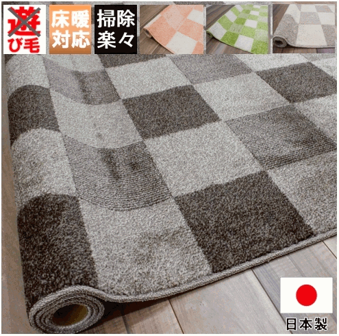 国産「ミモザ6帖261×352」高機能 丸巻き ラグカーペット 清潔 安全 快適 ホットカーペットカバー床暖房対応 江戸間6畳約261×352
