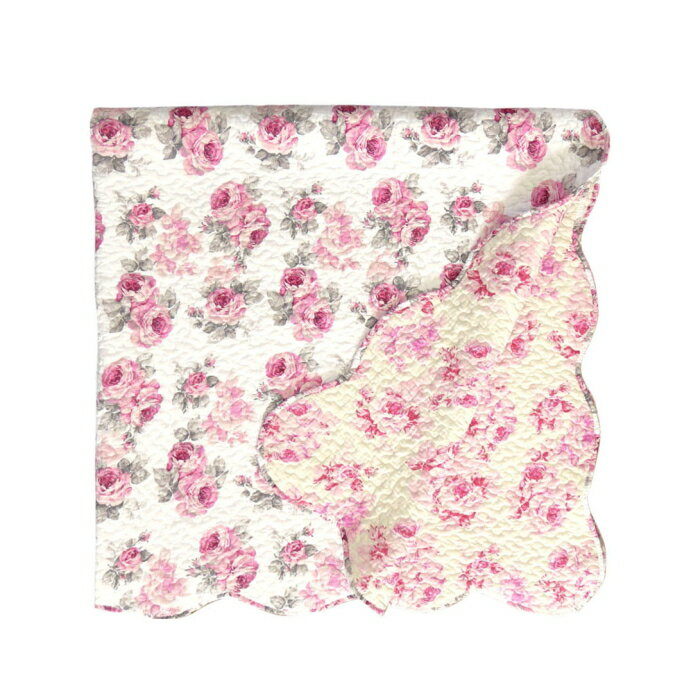 ルーシーマルチカバーLサイズ 正方形約190cm×190cm キルト 薔薇 ローズ かわいい ピンクソファカバー こたつカバー マット ベッドカバー