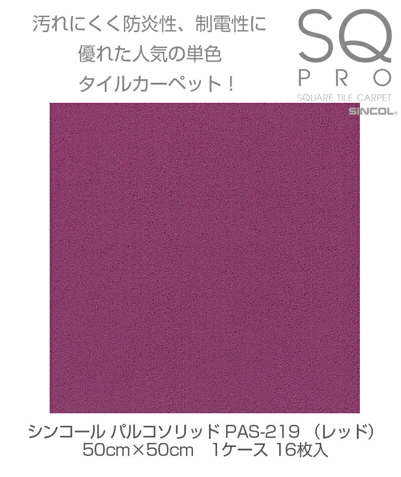 シンコール タイルカーペット パルコソリッド PAS-219 1枚あたりのサイズ 50×50cm パイル長 3.5mm(総厚6.5mm) パイル密度 1/10G ホルムアルデヒド放散量基準 F☆