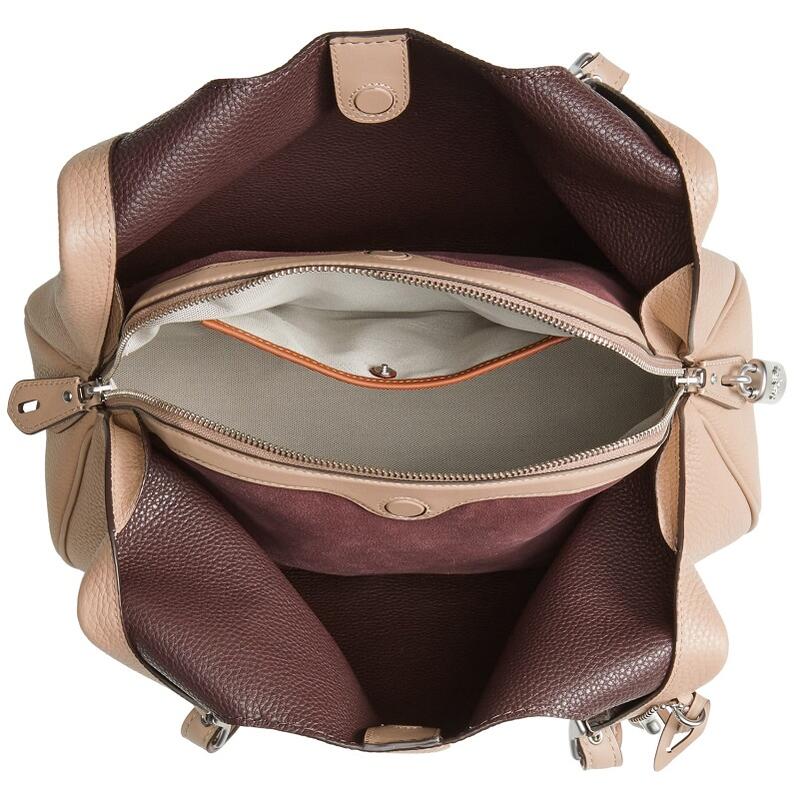 バッグ上部中央マグネット開閉タイプで、貴重品や身の回りの物を安全に入れられる中央のファスナー付きコンパートメントを設けているのでとても便利です。