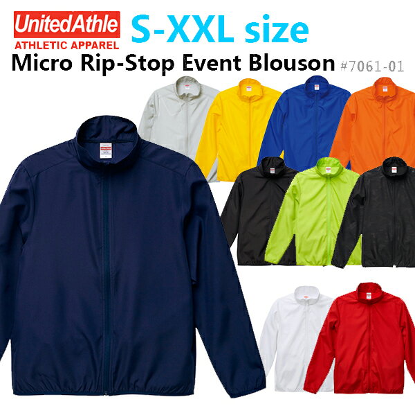 マイクロリップストップ イベント ブルゾン(一重)【United Athle(ユナイテッドアスレ)7061-01】【撥水・薄手無地・ジップ ウィンドブレーカー ブルゾン・イベント・作業着】【0422】☆